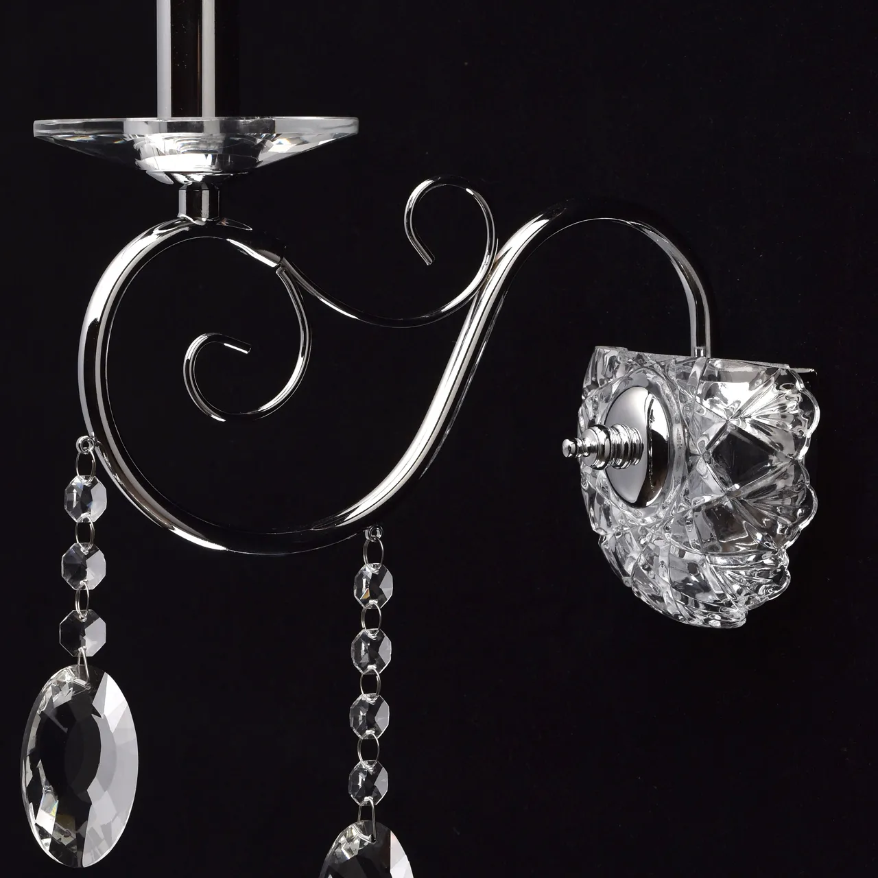 Металлическое основание цвета хрома. Декор - хрусталь, высокого качества.