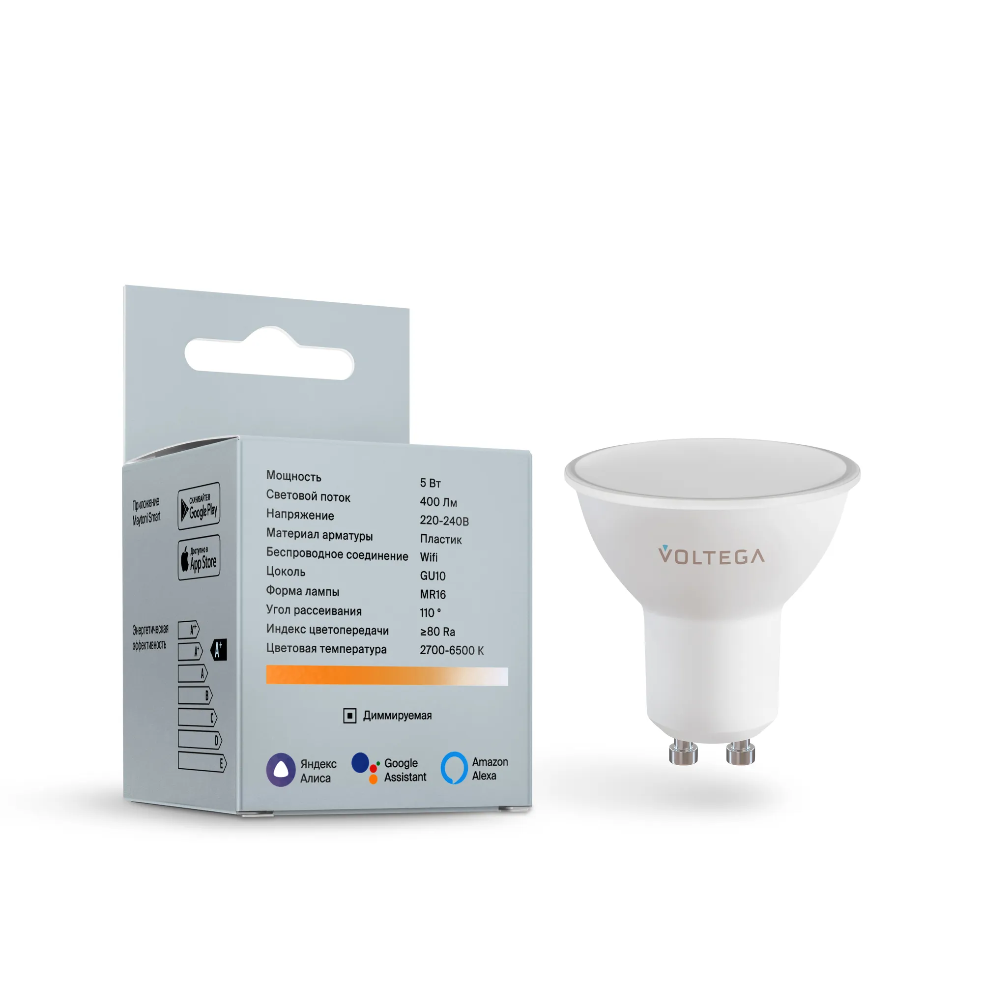 Лампа светодиодная диммируемая Voltega GU10 5W 2700К матовая VG-MR16GU10cct-WIFI-5W 2425 купить в Иркутске по лучшей цене
