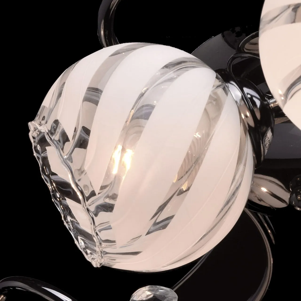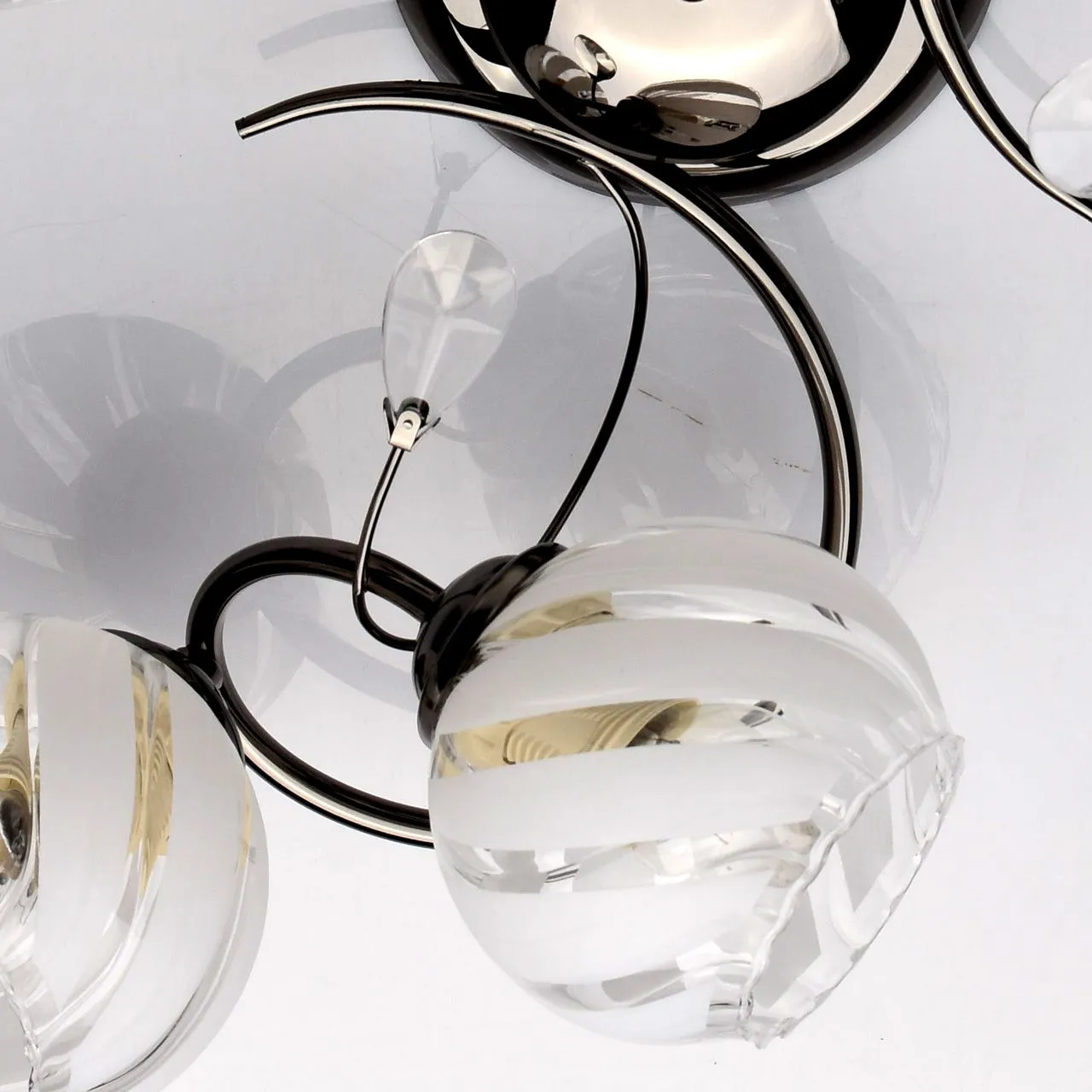 Металлическое основание цвета никеля, плафоны из стекла с рисунком. Декор из декоративного стекла.