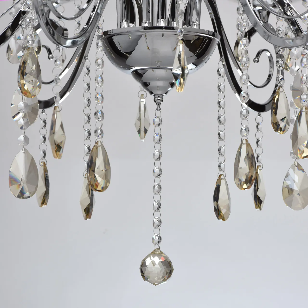 Металлическое основание цвета хрома, декоративные подвески из хрусталя