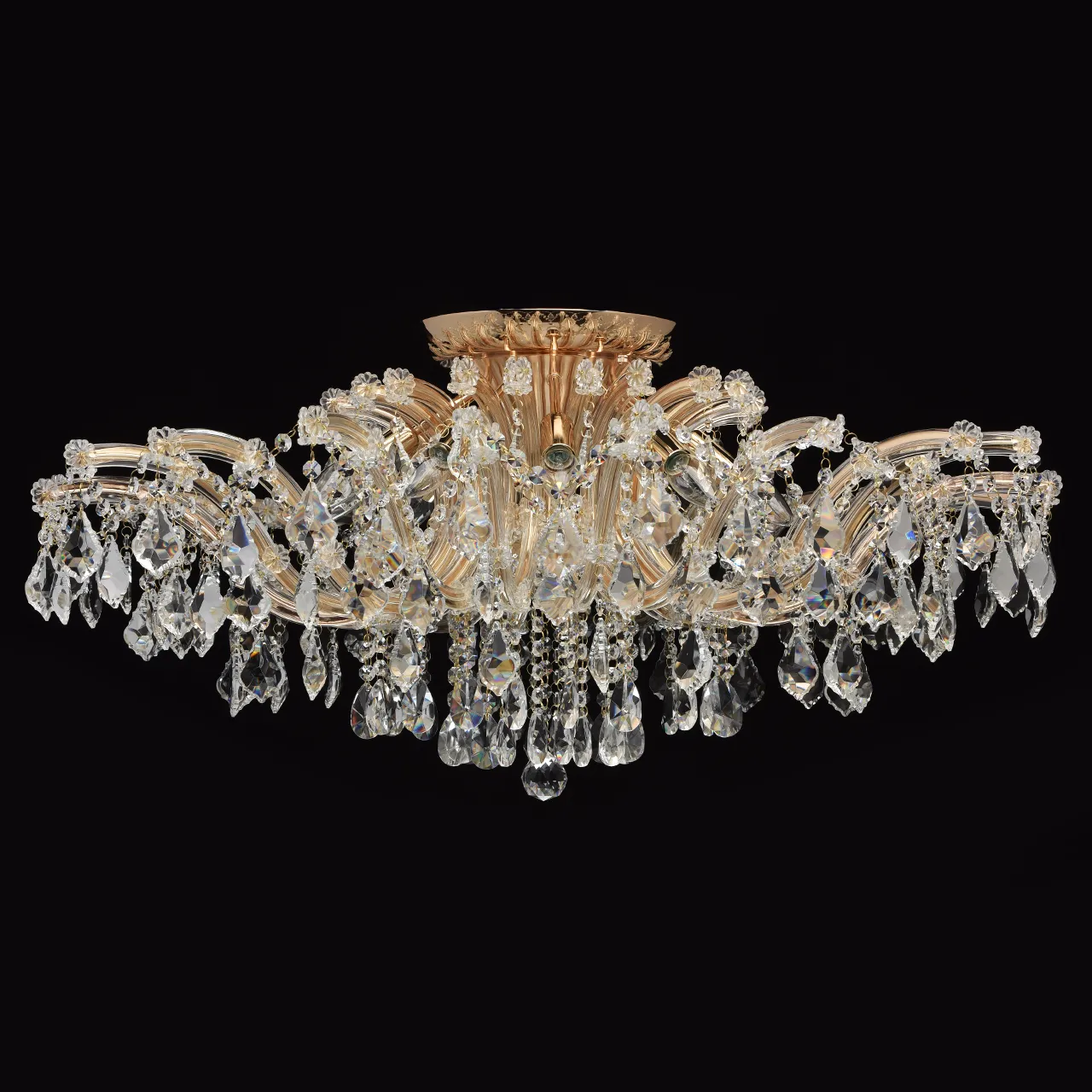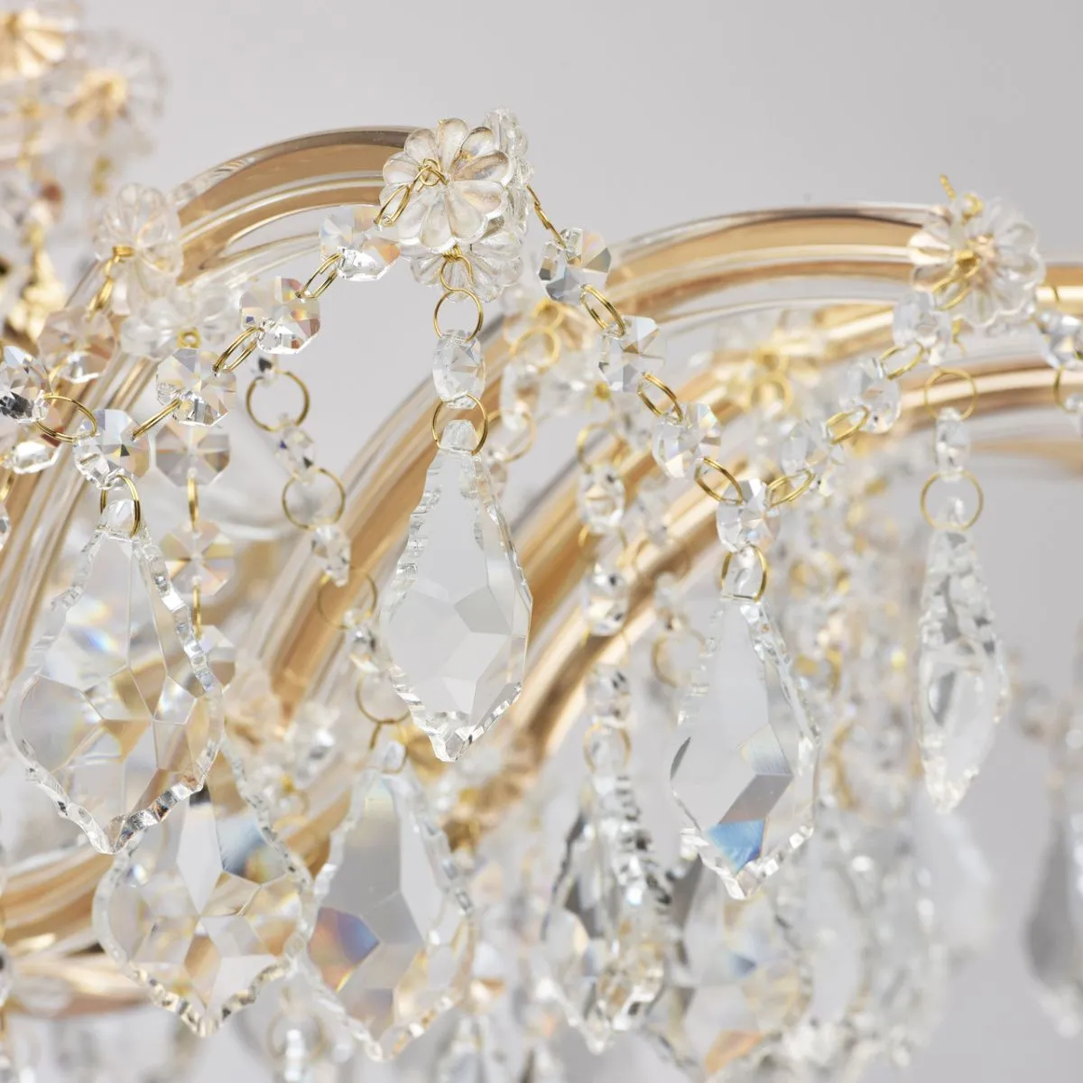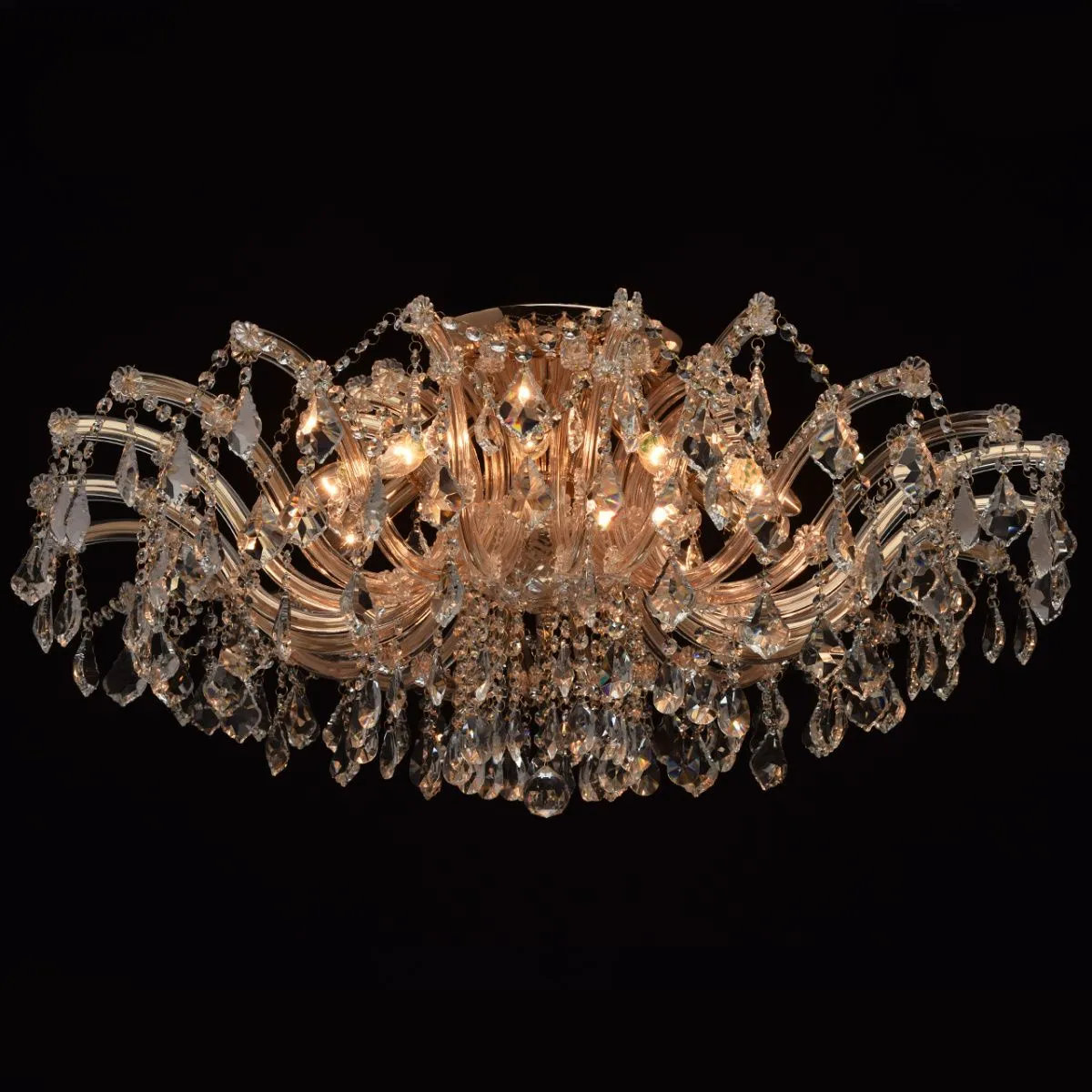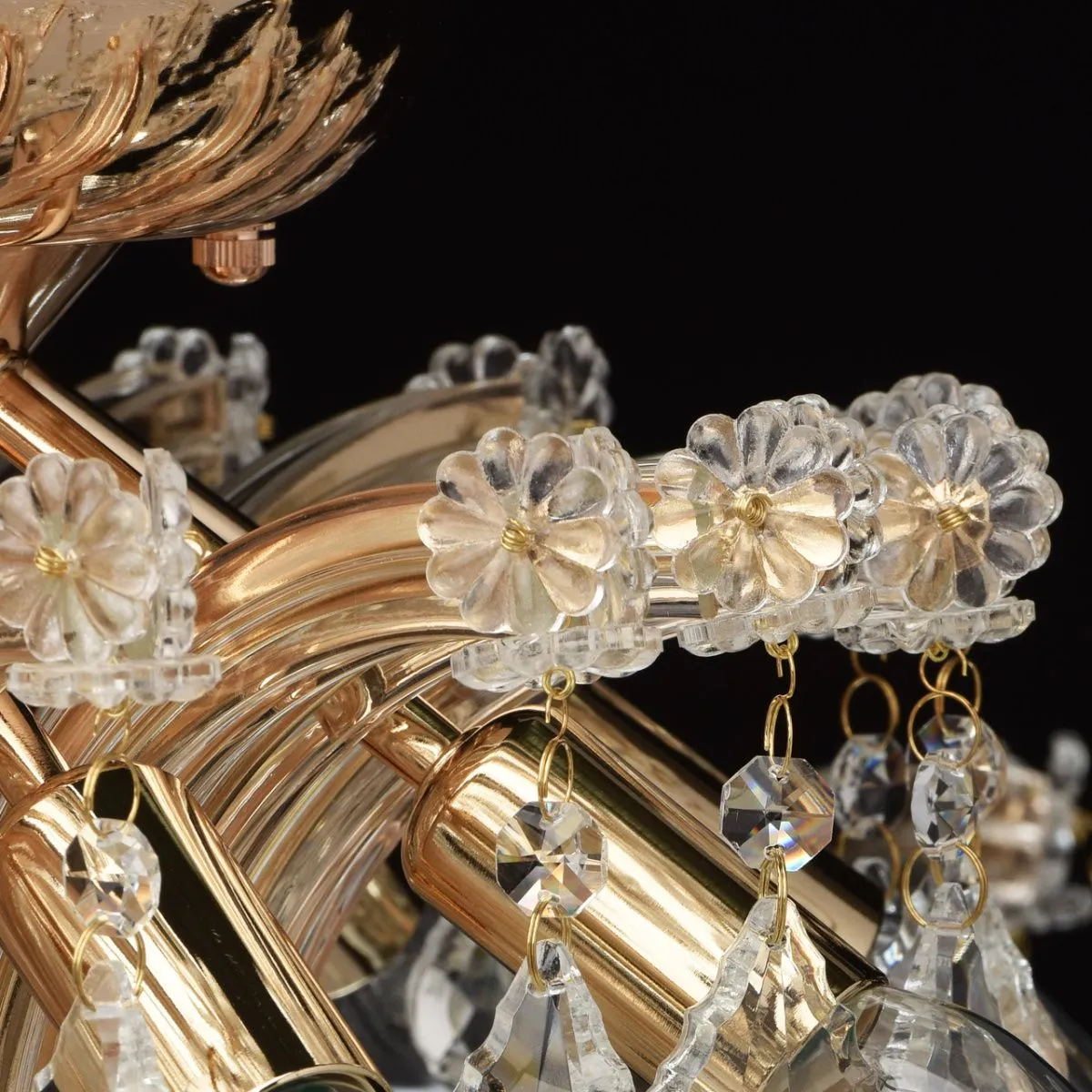 Металлическое основание цвета золота, декоративные элементы из хрусталя, стекла и акрила